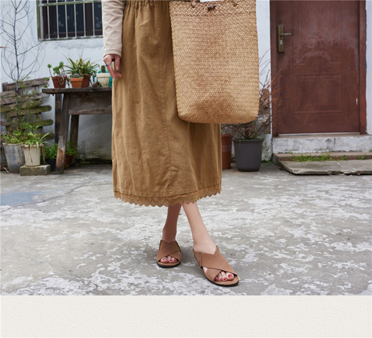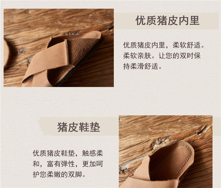 森女复古棉麻搭配个性露趾真皮交叉软底百搭懒人女拖鞋