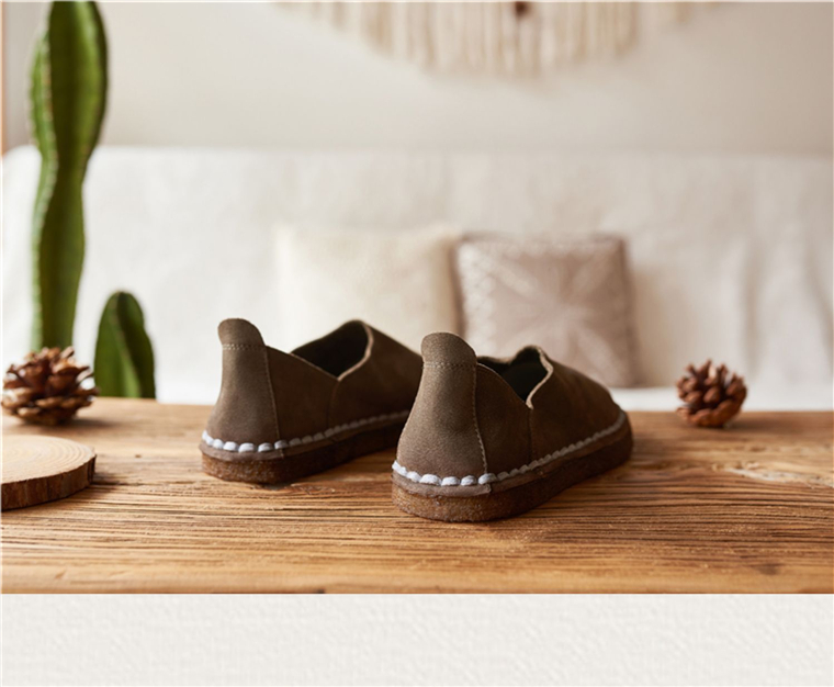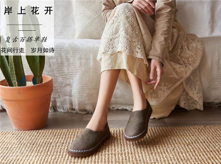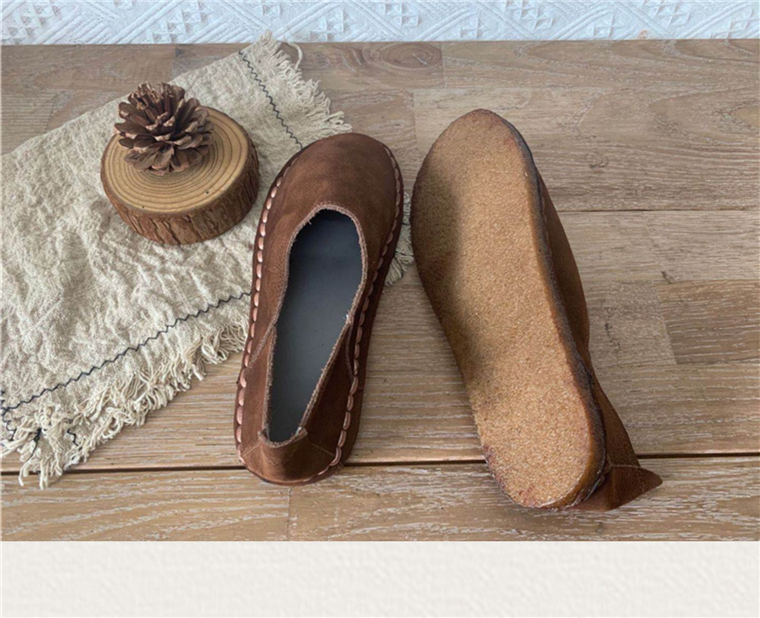 森系复古真皮圆头全皮车缝线一脚蹬套脚百搭女单鞋