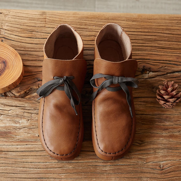 2021秋冬新款文艺复古手工真皮系带软底百搭褶皱马丁靴女