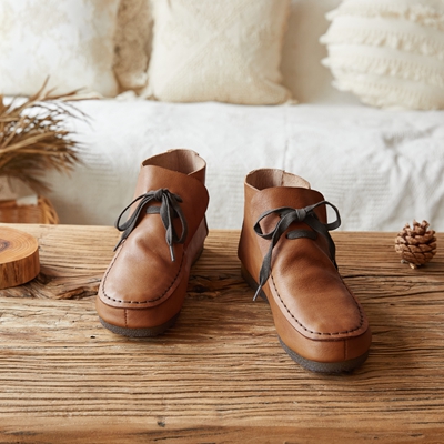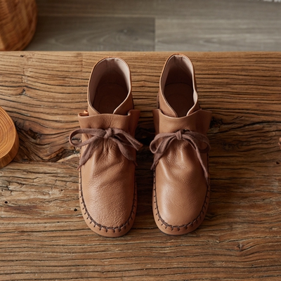 2021秋冬新款复古文艺手工真皮软底系带百搭低帮褶皱马丁靴女
