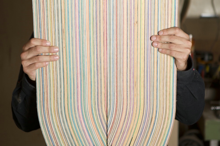 于是,在完成自己工业设计的学业以后,他便着手于这项被他称作“PrismaGuitars”的木工项目。他把自己最喜欢的滑板元素应用到了吉他的设计之中。所有的制作吉他的材料都是他回收的旧的滑板,再加以丰富的色彩元素,使每把吉他都独一无二。
