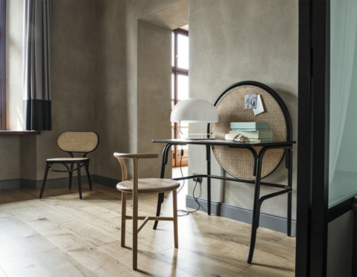 GamFratesi工作室以藤条为装饰材料为维也纳家具公司Gebrüder Thonet设计了一组家具,包括沙发,高低不同的椅子。