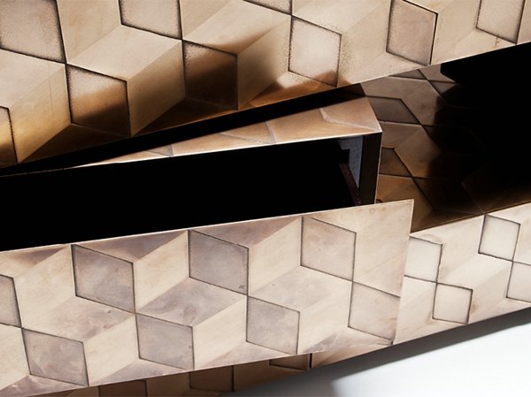 他们喜欢在艺术设计时融入自己在旅行中见到的自然风光,地标建筑和人文风情。这里所说的“融入”可不是粗略地在设计作品中生硬加入,而是完全模拟现实生活中万事万物的生长和发展,并通过传统材料,木材、蜂巢、黄铜以及现代材料,玻璃、着色树脂、不锈钢、液态金属,创造出和自然景观或是人文景观外貌高度相似的现代家具;哪怕是海洋水纹在潮汐时的波动频率,荒野地貌在地理环境下的自然分布,又或是雨滴在瑟瑟秋风中下落速度,蒲公英在微风摇曳中的伸张姿态,还有逆流白浪与迎面激流交锋的激昂之态,都在Based Upon工作室设计师的神奇之手中完完全全地展现出来。