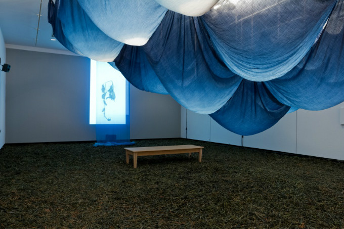 ▲刚从靛蓝染液里取出的纺织品呈黄色,接触空气后逐渐变成蓝色