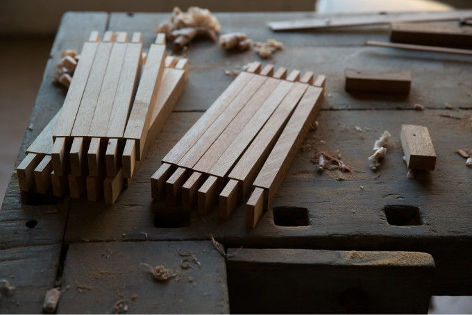 没有钉子没有胶水,每件家具都是用古老的榫卯结构相交构成,精简但不简单,每一个榫眼都是纯手工打造。他甚至夸下海口说他的产品可以使用一生,足以见他对自己工艺的自信。