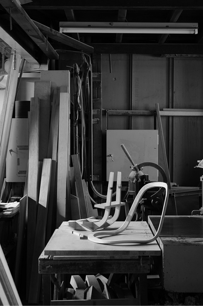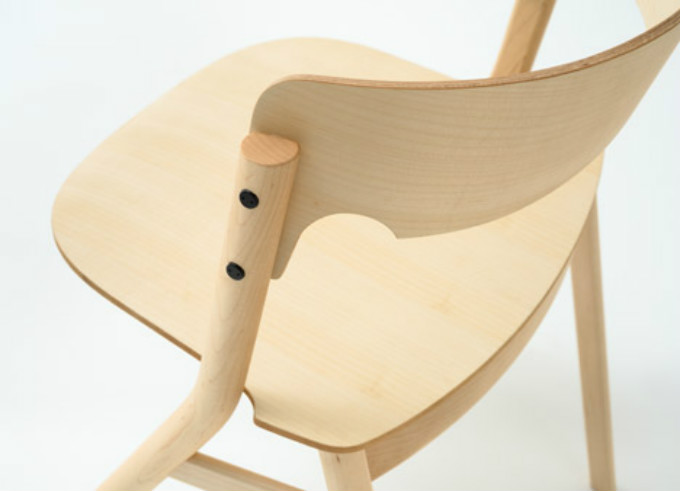 一张轻便椅,看似普通却暗含诸多设计心机。轻微弯曲的座位使它更符合人体特点,舒适度也因此更进一步。倾斜的前腿向上延伸,支撑着每边用两颗黑色螺丝钉固定的靠背。两条后腿突出在反方向,由刚好安置在座位下的小托梁支撑。所有看似恰巧的刚好,实则每一处都经过Jin的精准设计。