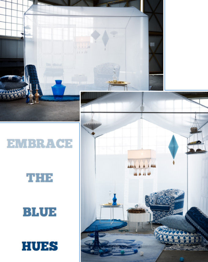 该系列是独立于宜家现有产品线的限量款,灵感来自于宜家团队去印度旅行时发现的一些有趣物品,旅程中他们发现了大量二十世纪八十年代之后就很少见的蓝色元素。当地人善于将色彩和各种物品相结合,有一个地毯是由回收废料与印地文邮票制成的。强烈的生活气息以及独特的异域风情给了设计团队很大的启示,在将蓝色的美感发挥到极致的同时,这些物品背后往往还隐藏着印度的故事。