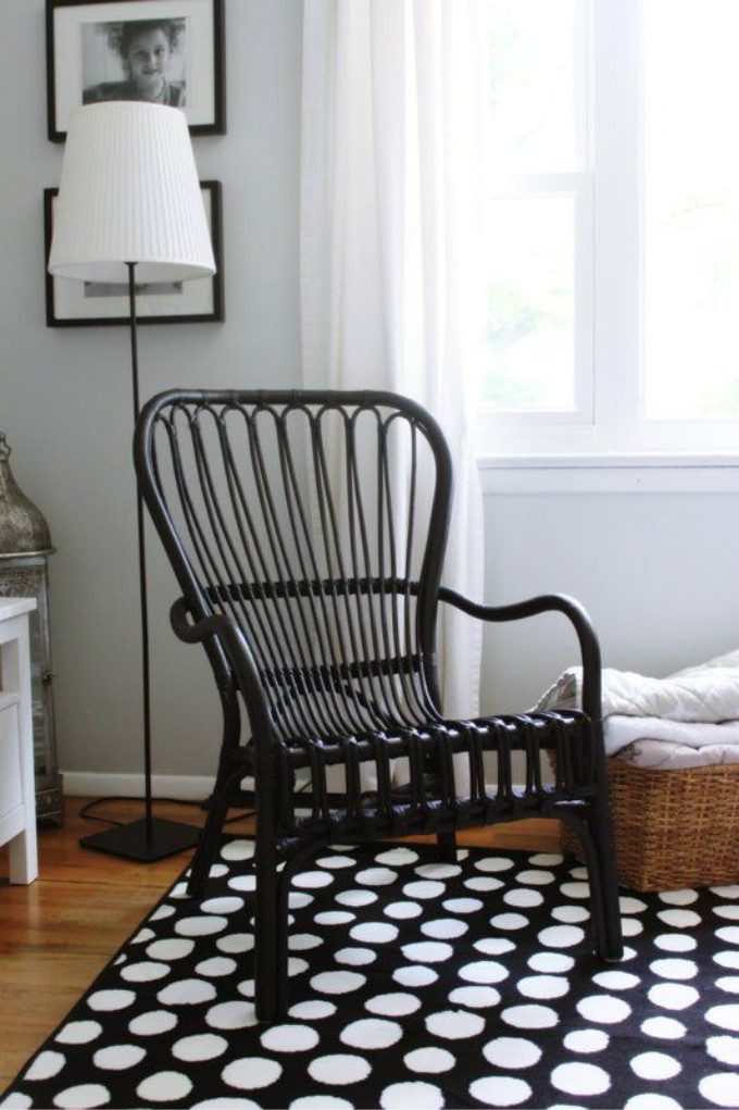 来自宜家的STORSELE扶手椅,选用轻便藤条手工编织并采用环抱式的设计,舒适又有些小复古,巧妙平衡了实用性和观赏性。