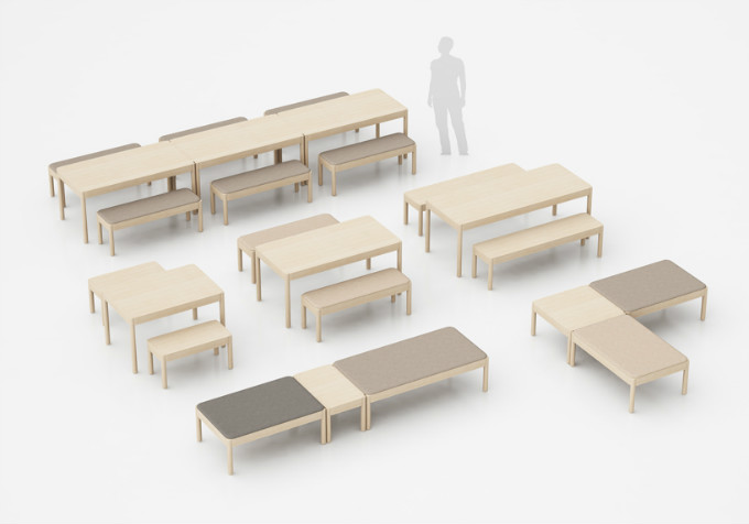 而且,Wakufuru像它的名字一样可爱,简直就是放大的积木。边角和桌腿的设计,非常适合相互组合“站队”,看似简单的形态可以产生众多效果。
