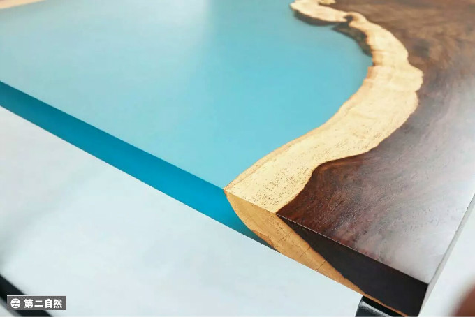 何澳辉及其拍档陈兆允是佛山的家具设计师,海的元素在他们的作品中被发挥得淋漓尽致。以蓝色为主色调,树脂为主要材料,他们将海的一角固定在桌子上、茶几上、凳子上。有浅海的波光粼粼,有沙滩的渐变融合,晶莹剔透的质感瞬间让人忘却身处何处,像是直接穿越到海边。