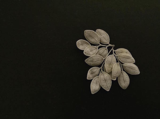 她用未漂白但经过草木染色的丝线,用钩针的形式编制出精美的树叶、蘑菇、浆果等造型的饰品,在此你不得不感叹于日本人的细腻与灵动。