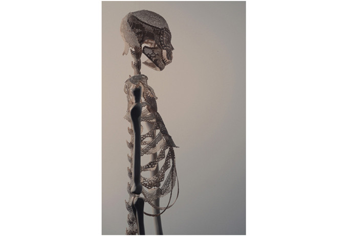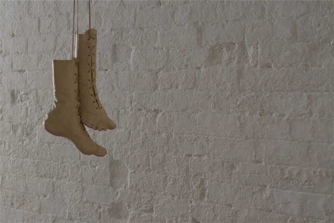 这些是由皮革和木材制成,表达女人以牺牲品把自己放在展示台上,她已经停止移动,但她的生活始终存在。