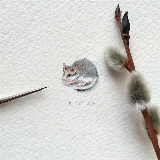 2015年,Irene Malakhova从水彩画中的萌趣动物受到启发,自那以后,她就开始专门从事微型绘画。