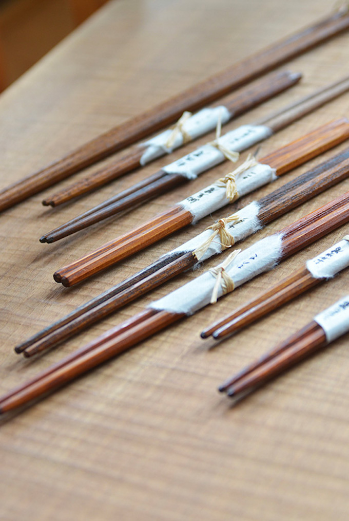 Eiji Hagiwara的手工切割的木质空白。它们被用来雕刻不同大小的筷子。
