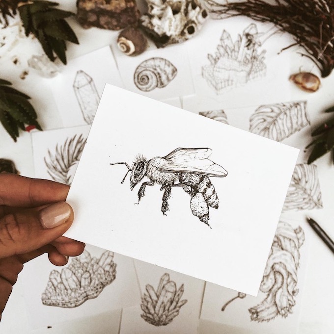 Quinn的作品细节感极强。大小不一的针管笔让她将每个生物的细节都精细地描绘了出来,再加之淋漓尽致的点线面结合,每张图纸看起来都栩栩如生。