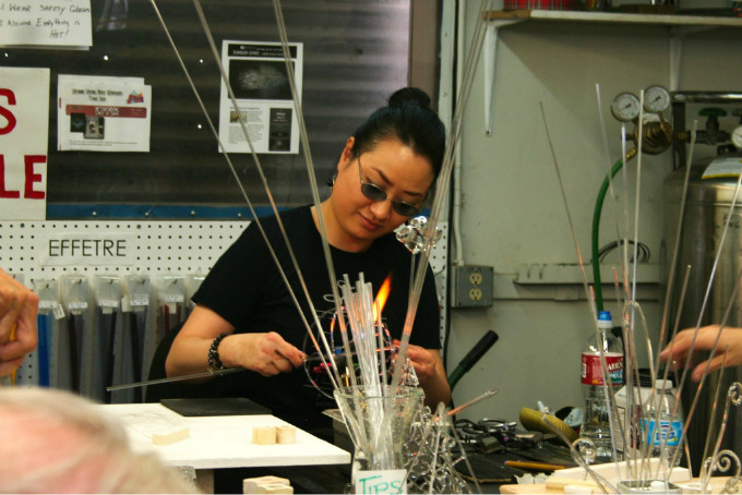 她不仅指导玻璃爱好者关于制作玻璃雕塑的方法,