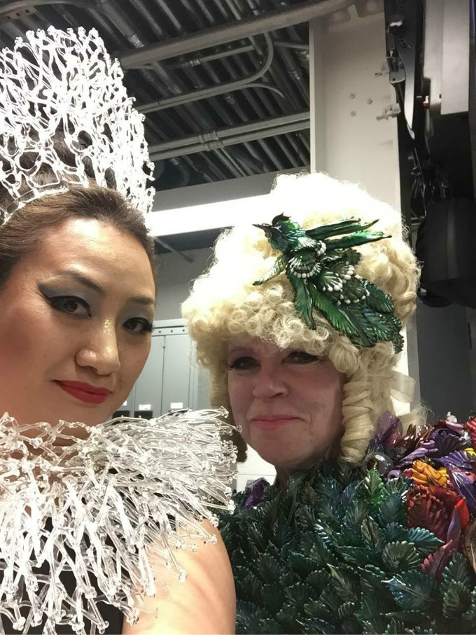 她身体力行地穿戴上了自己亲手创造的作品进行艺术展现。