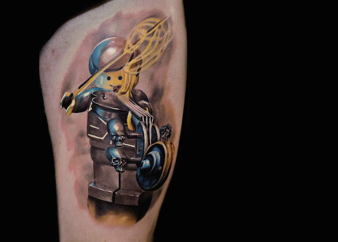 比如这组经典的漫画英雄角色的乐高公仔纹身
