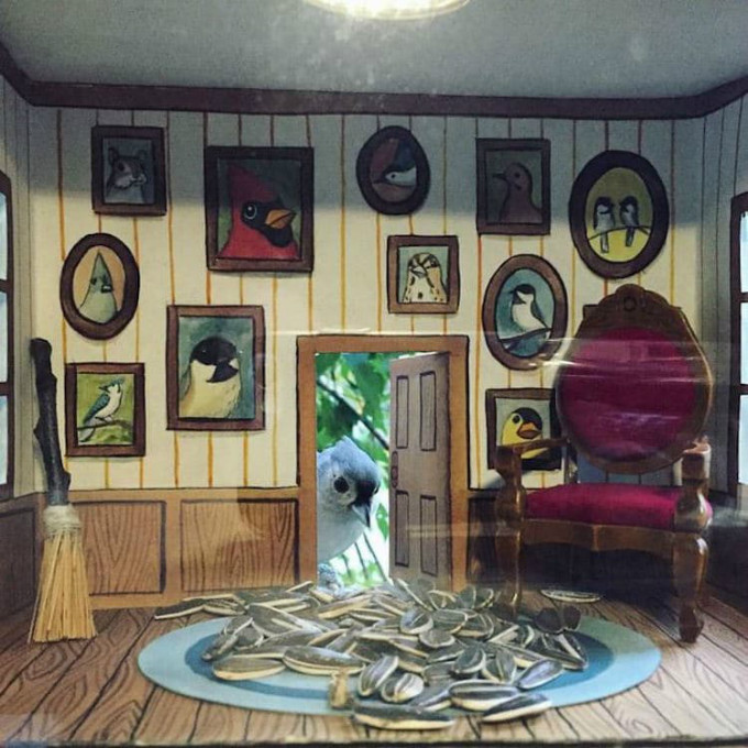 在房子里,Jada Fitch还会给小鸟们提供一些食物和水,