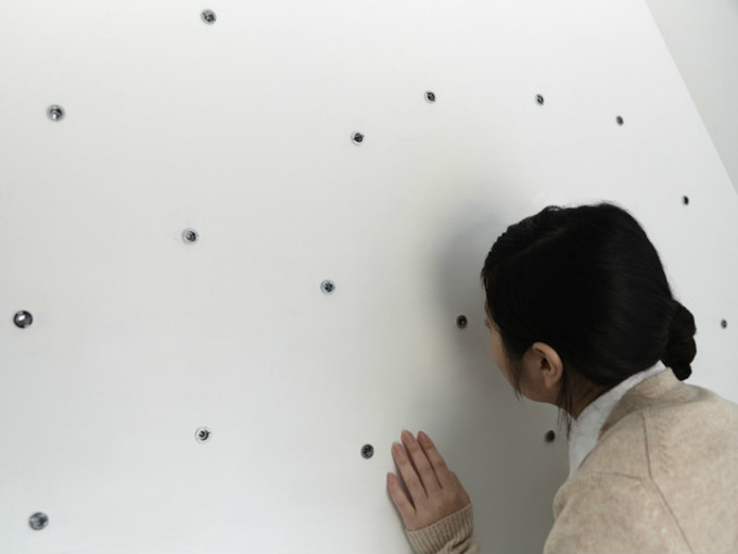 观察员看可以通过墙上的小洞观察鸟类的活动