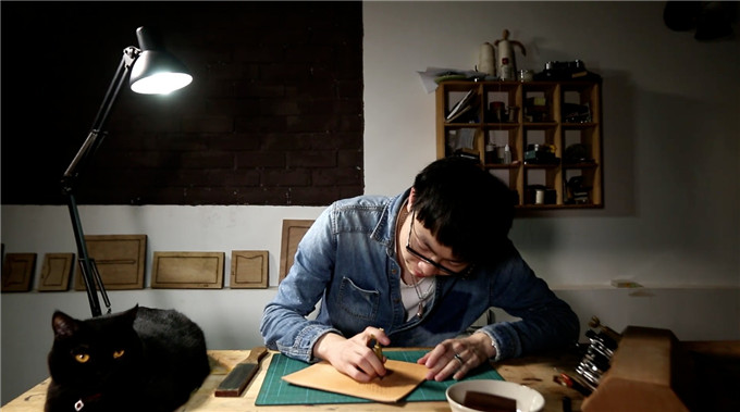 所以晚上利用课余时间,他开始沉浸于皮雕世界。