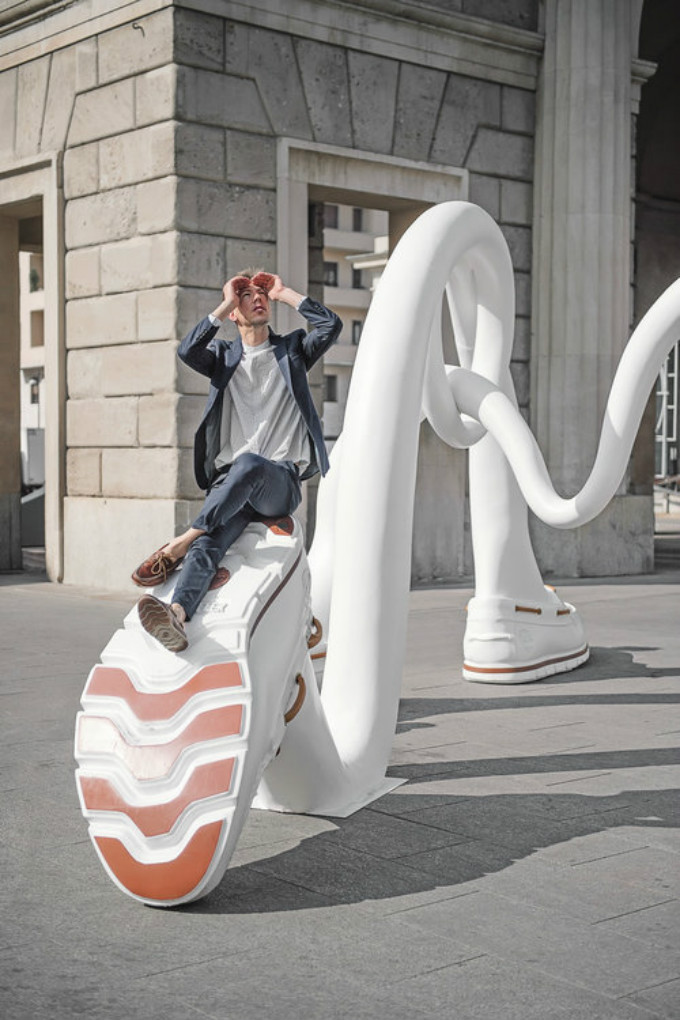 套上添柏岚代表鞋样 既宣传了鞋子 又体现了他的设计高超