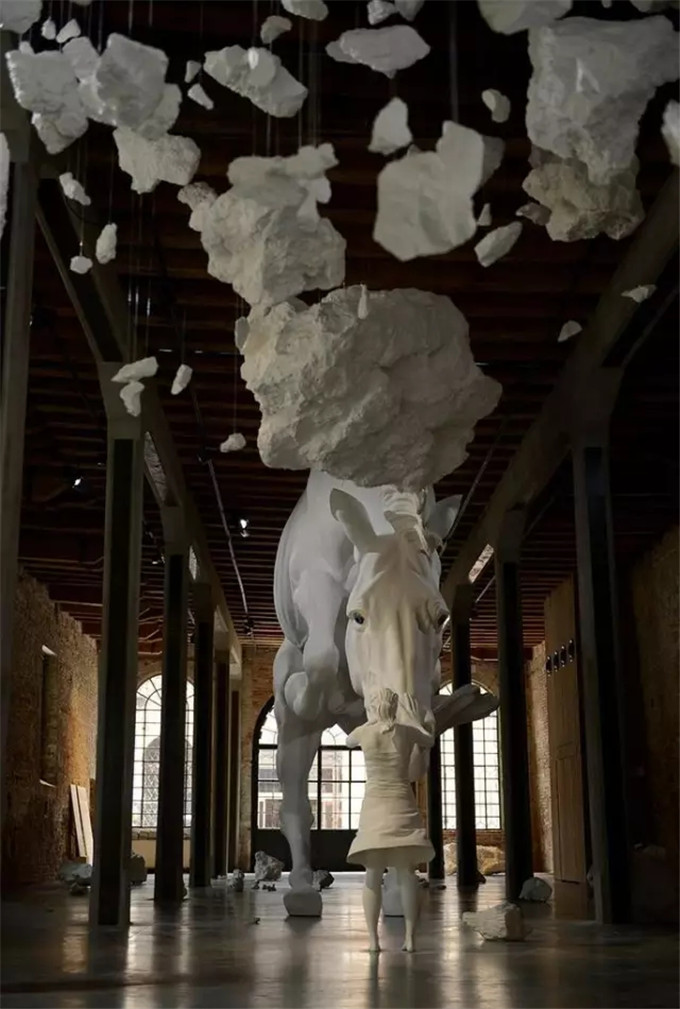 一个腾空而起的巨型白马与一个瘦弱女孩,