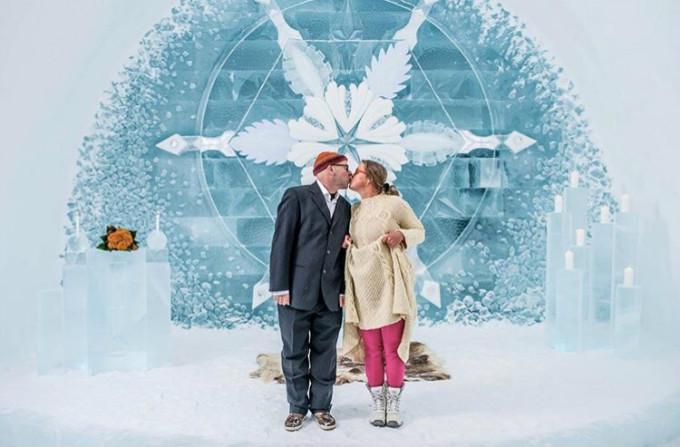 游客还可以在纯洁晶莹的冰教堂举行意义非凡的婚礼,
