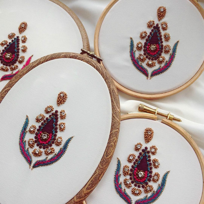 Humayrah Bint Altaf在刺绣时参考了真是的昆虫,