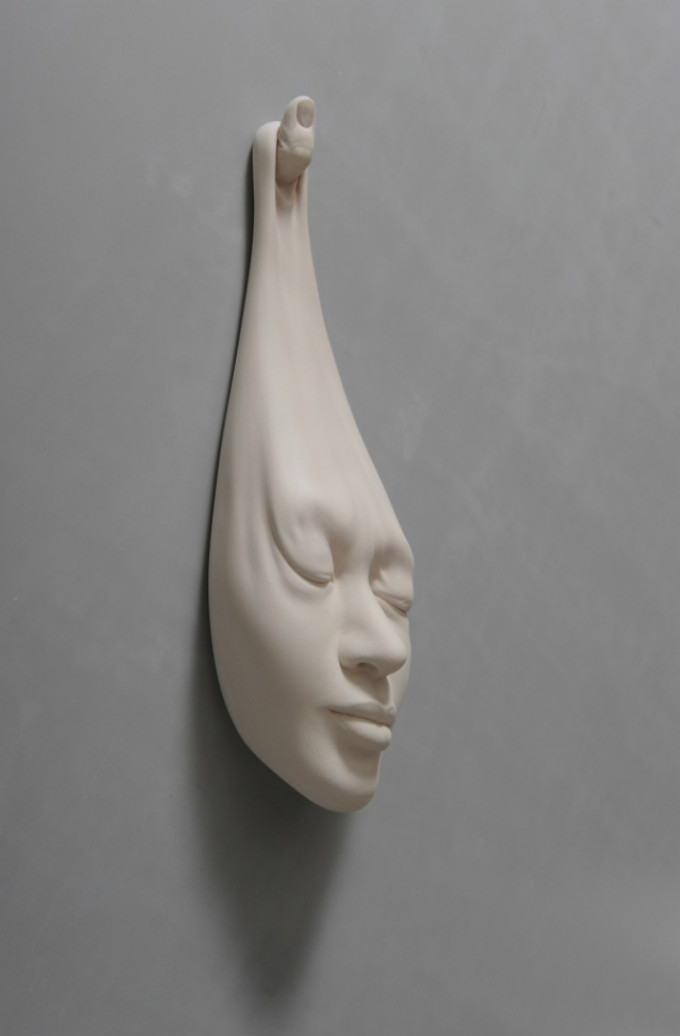 这些面部雕塑以超现实的方式被拉伸和开放。