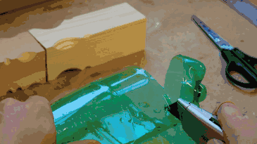 利用热风枪加热塑料,使其变形,紧紧的贴住木材