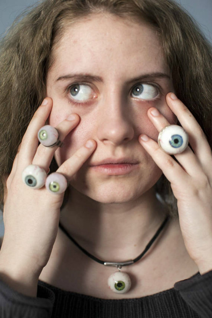 牙齿是假的,是由聚合物粘土雕刻而成的。