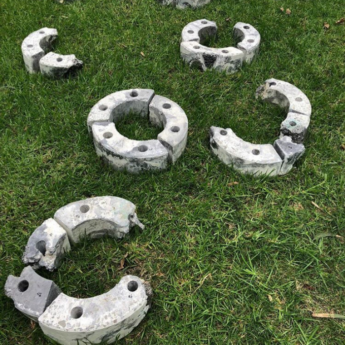 这次,他用矿渣、煤灰、大理石废料组成一个个圆形,