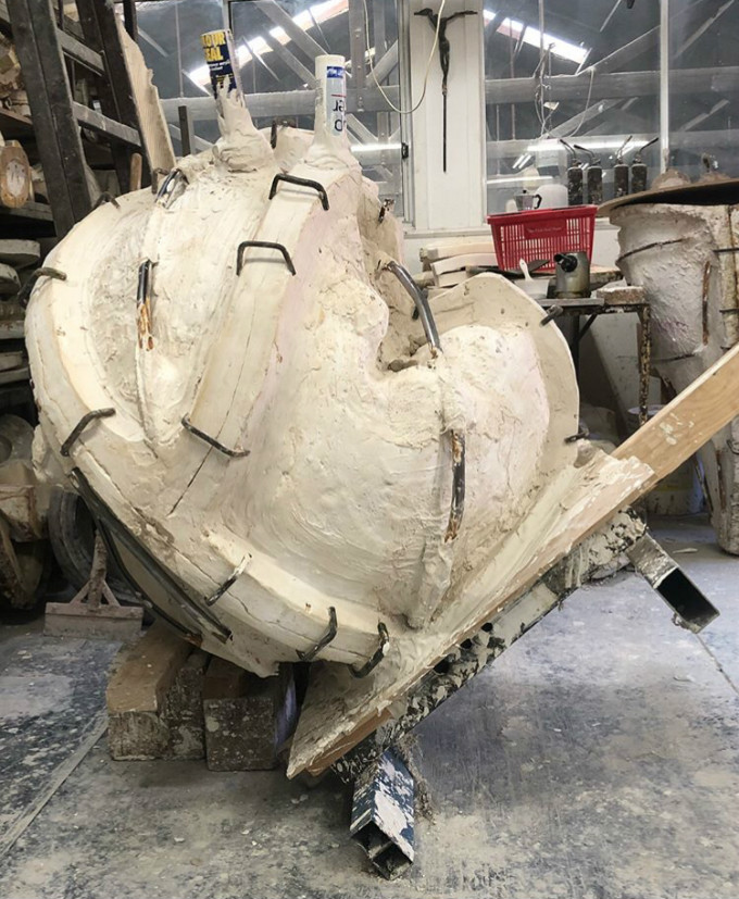 他用被风化的水泥、钢筋和其他材料作为他作品的基础,