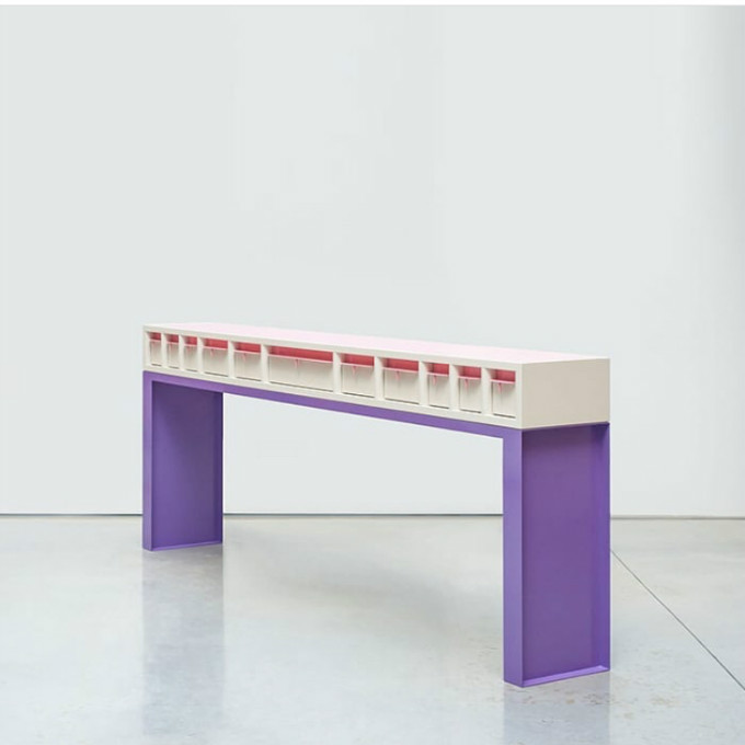 桌子和柜台都使用了密集排列的竖条管,