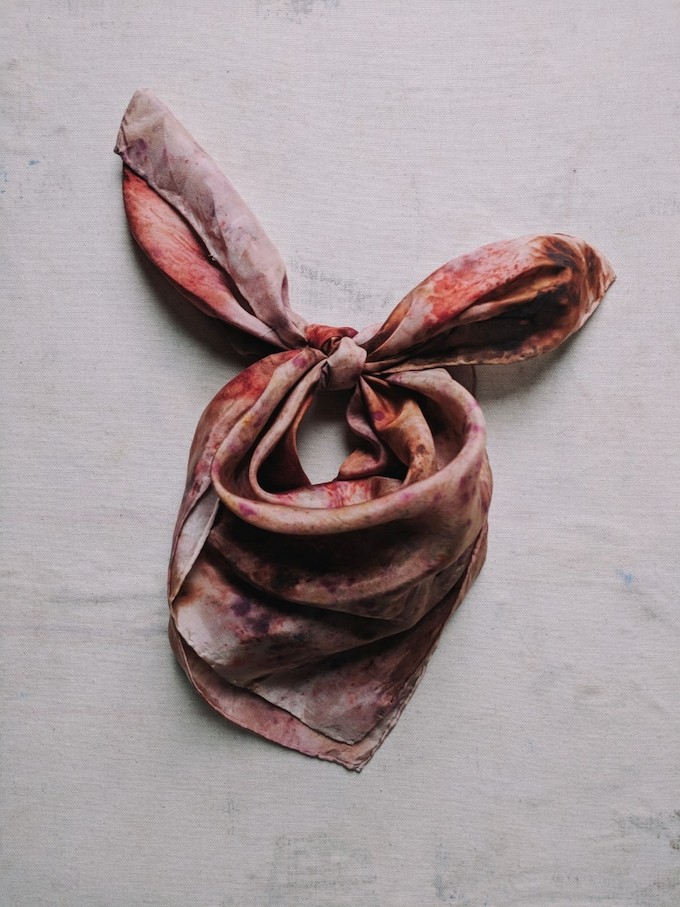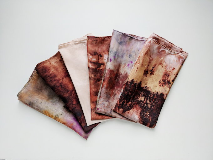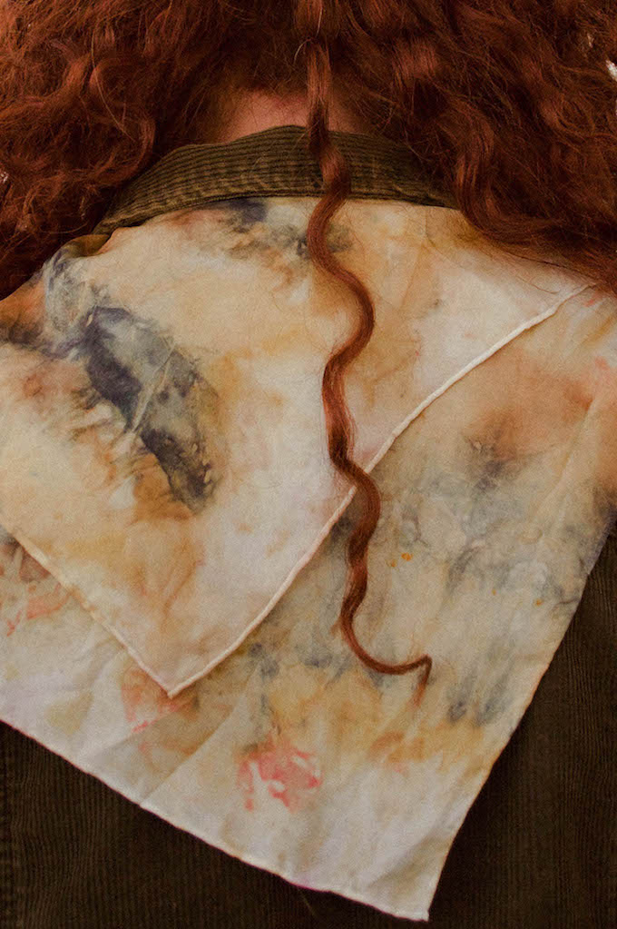Kylee Barnard经常不做染缸,而是直接把材料放在正方形的丝绸上,