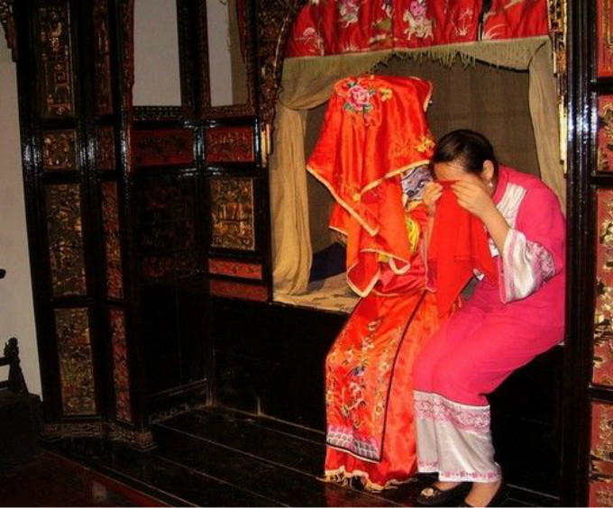 听老人们说,早些时候,没有嫁而不哭的人家。如果出现嫁而不哭的姑娘,也会被邻里看作没有教养的人,传为笑柄;相传有出嫁姑娘不哭而遭母亲责打的事,这位母亲当然算得上是入流导演了。通过学者的研究,“哭嫁”通常有这样几种感情:伤离别,念亲恩;换身份,忧前途;怨婚姻,骂媒人;不平等,怨命运。