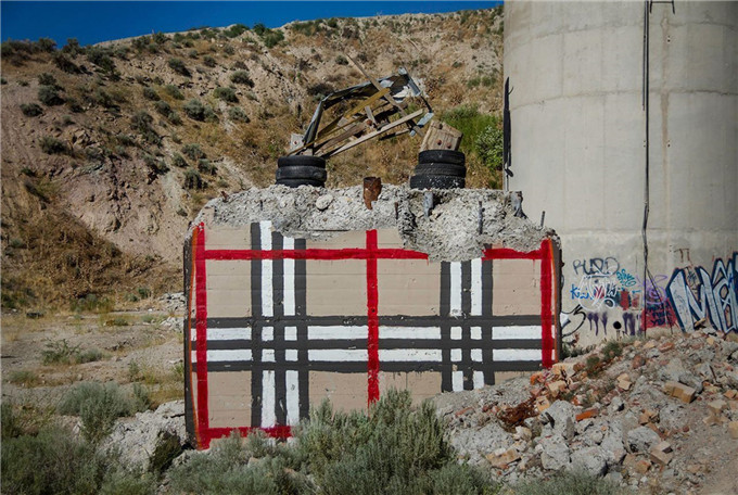 一个远离城市的废弃工地,西边的洛杉矶沙漠无人区,废墟纵横,人迹罕至,就像《Ghost Stories》里的歌词:“我只是一个孤魂,消失在无人之境”。而西拉伯德的到来,让它重焕光彩,矗立起这些带有巨大品牌 LOGO、色彩鲜艳的奢侈品包包,鲜明的对比营造出一种意想不到的有趣魅力。