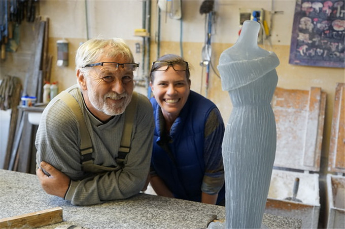 凯伦使用流传了5000年的铸造工艺打造了这些美轮美奂的水晶玻璃礼服,早期她采用吹制玻璃的手法制作雕塑,后期的便选择浇铸琉璃的方法成型。
