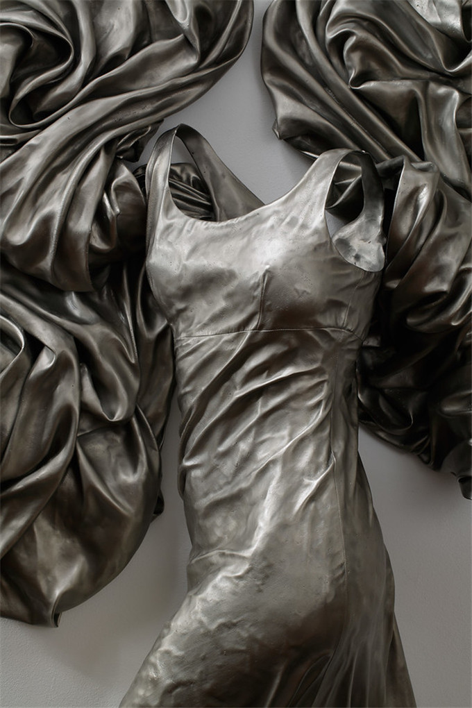 衣服的褶皱记录了身体留下的印记,拉紧的衣服能够让我们在幻想中捏造出一个身体,一个耗尽内灵魂的空洞身体。凯伦将这解释为现代的“空虚的皮囊”,并对身体纤瘦表现达到了一定的夸张程度,她也是借用专属女性服装来表达对身体理解。
