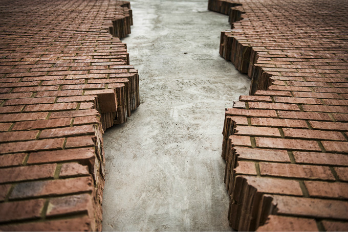 他用砖制造了这个被“撕裂”的外壳并安装到建筑物上,