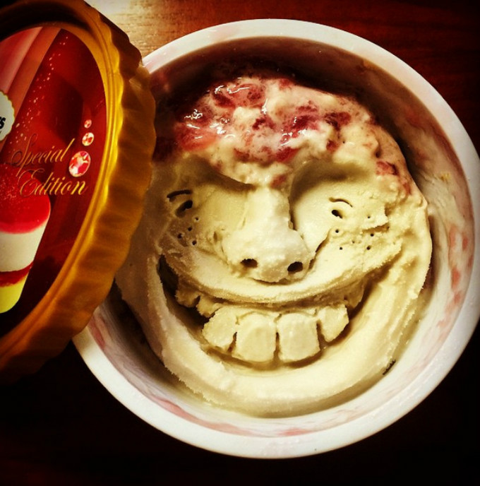 吃到一半被剩下的冰淇淋,虽然味道依旧甜美但形状已经不稳固,到处流淌汁水的样子实在让人难以喜欢起来。除了重新冷冻之外,还有没有其他办法能让冰淇淋得到新生呢?日本艺术家Makoto Asano灵光一闪,在不同口味的哈根达斯上作出了让人忍不住笑起来的内容。