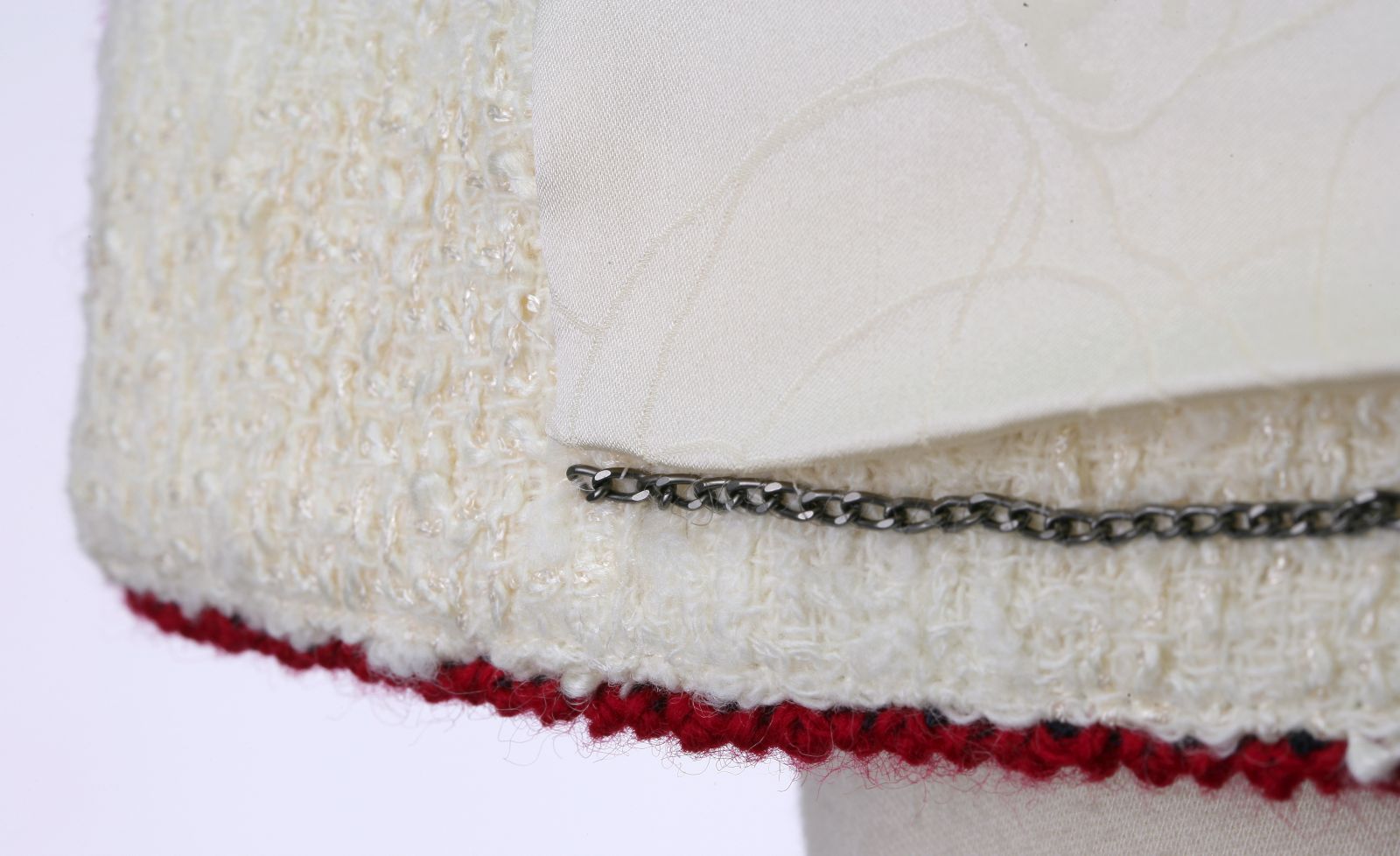 香奈儿女式却将此面料运用在女性套装上,打造出品牌最经典的大衣、套装,并在口袋与袖子的设计以利于双手活动作为前提。在这里同时更独具Chanel式的巧思,以衬里作为Chanel外套的一个秘密,在外套下摆点缀着能够让外套笔挺,并自然下垂确保外套永远平整的纤细链带,虽然比一般外套来的重,但却散发出具有质感却又独立个性的风格,完美承袭了Chanel的精致。