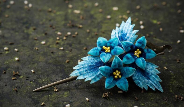 与一般的清宫剧不同,这部剧里没有繁冗的珠翠纤罗,取而代之的是神似草木鲜花的髻间配饰,这种以蚕丝原料制作而成的“人造花”,被称为绒花。