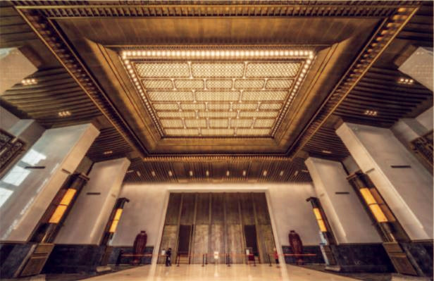 不仅是建筑外饰,室内装饰也是惊艳。杭州全球首脑峰会G20的会客厅就被铜所包裹,铜斗拱,铜椽子,铜望板,铜墙铜壁,铜水墨画等等。浑厚庄重,又素雅婉约,无不散发着中国独有的人文气息。
