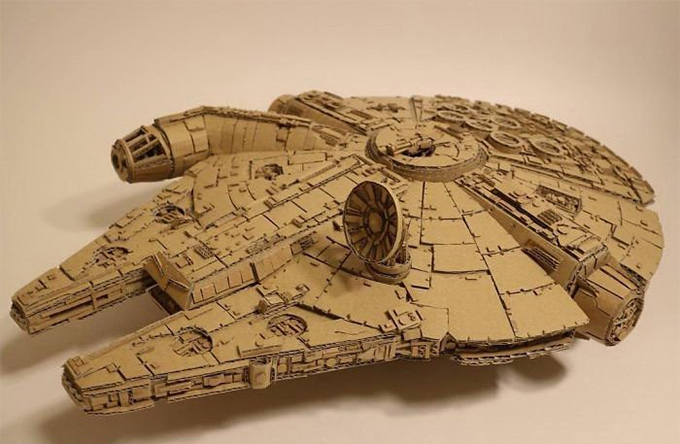 《星球大战》中的千年隼模型,是Ohno所有纸箱作品中的一件巨作,其还原度之高足以震惊世人,千年隼上零件齐全,每一个螺丝和焊接缝都非常精准细致,真的好想钻进去一探究竟,没准还能发动引擎起飞呢。