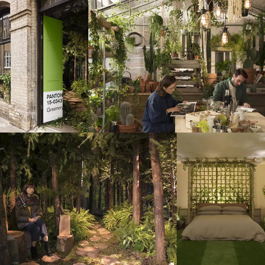 去年,借着发布年度代表色草木绿,PANTONE光速和Airbnb合伙,在伦敦修建了一个巨大的植物阁楼。这个名为Outside In的房子以可持续和环保的理念,大玩同类色,十分高级养眼。