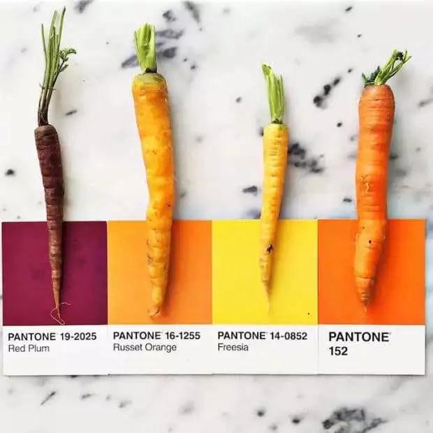 文末再来欣赏一波Pantone美图吧,图片来自旧金山摄影师摄影师Lucy Litman,她将食物、花卉等物品与Pantone色卡相匹配,创造了一系列新的“万物Pantone色卡”。