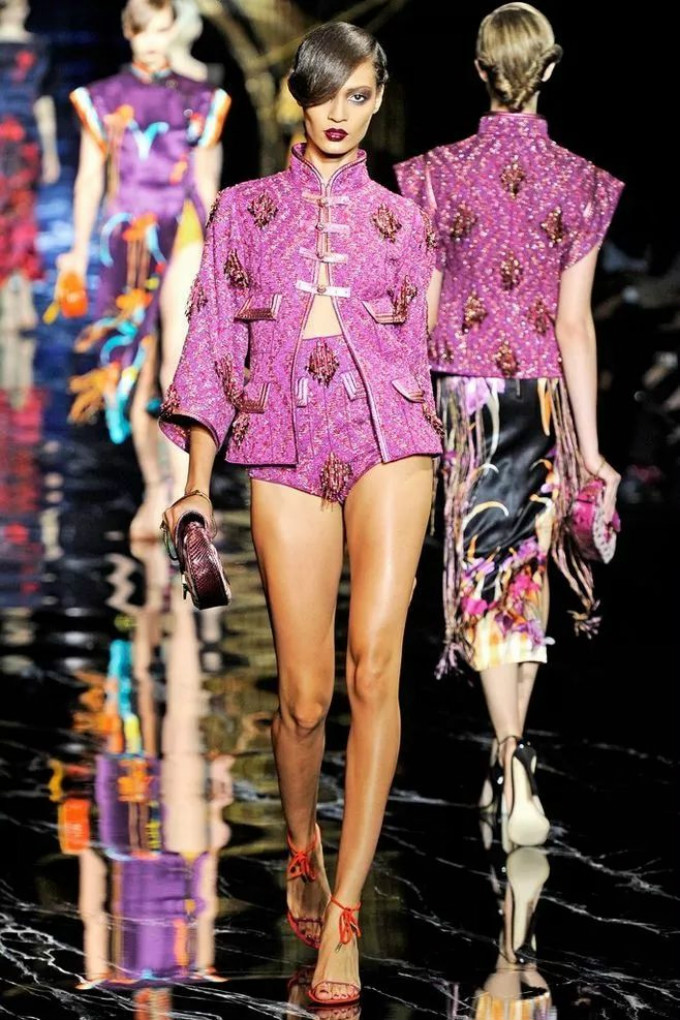 追溯到2011年的LV春夏秀,也是中国风的主题,旗袍,折扇,兰花,盘扣,这些本该含蓄唯美的东方元素在设计师手中被改造成了性感蛊惑术。