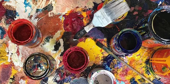他每天早上的第一件事,就是挑选好今天画海报所需要用到的颜料。